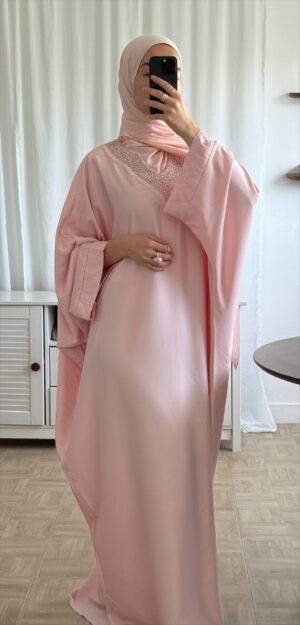 Sa coupe ample et fluide assure un confort optimal tout en mettant en valeur la silhouette de façon modeste et élégante. Idéale pour vos occasions spéciales : Eid, mariages, fiançailles ou dîners habillés.